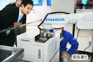 “熊(xiong)貓(mao)(mao)(mao)”作為(wei)南京市智能(neng)工(gong)(gong)廠(chang)示(shi)范(fan)(fan)企(qi)業的(de)先進(jin)智能(neng)制造技術(shu)和(he)試點示(shi)范(fan)(fan)案例,位于5號展(zhan)館入口處(chu)。展(zhan)區每天(tian)有近50名熊(xiong)貓(mao)(mao)(mao)員工(gong)(gong)現場(chang)負責產品(pin)介(jie)紹、設備(bei)維保(bao)、服務(wu)協調等工(gong)(gong)作,約660平方(fang)米的(de)超大展(zhan)區內向(xiang)觀眾(zhong)呈現了(le)數(shu)字車間——新型平板顯(xian)示(shi)工(gong)(gong)廠(chang)智能(neng)移載(zai)系統、智能(neng)工(gong)(gong)作站——產品(pin)定制柔性生產線、聯動工(gong)(gong)作站——熊(xiong)貓(mao)(mao)(mao)雙機(ji)(ji)器(qi)(qi)人配變位機(ji)(ji)現場(chang)演示(shi),以(yi)及智能(neng)制造解決方(fang)案詳細(xi)介(jie)紹。尤其是“熊(xiong)貓(mao)(mao)(mao)”最新研發的(de)智能(neng)工(gong)(gong)作站,以(yi)熊(xiong)貓(mao)(mao)(mao)機(ji)(ji)器(qi)(qi)人吉祥物俻(bei)俻(bei)的(de)三種姿(zi)態為(wei)案例,展(zhan)示(shi)了(le)利用視覺辨識技術(shu)進(jin)行自動上下料、切(qie)割、打磨、打標包(bao)裝,完(wan)整的(de)自動化生產流(liu)程(cheng)成功(gong)吸(xi)引了(le)眾(zhong)多(duo)觀眾(zhong),再次提升了(le)大家對(dui)“熊(xiong)貓(mao)(mao)(mao)”的(de)認識。在(zai)為(wei)期3天(tian)展(zhan)會期間,熊(xiong)貓(mao)(mao)(mao)裝備(bei)與(yu)多(duo)家客戶(hu)簽署了(le)意向(xiang)訂單。