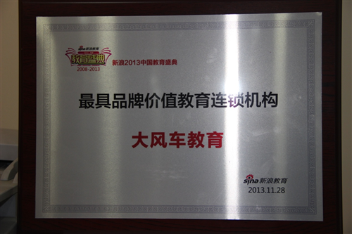 這(zhe)些成績的(de)取得,讓大(da)(da)風車(che)教(jiao)育(yu)在國(guo)內獲得了極高的(de)品牌知名(ming)度和美譽度,新浪(lang)教(jiao)育(yu)授予(yu)大(da)(da)風車(che)教(jiao)育(yu)“最具品牌價值教(jiao)育(yu)連鎖機構”稱號,可謂實至名(ming)歸(gui)。
