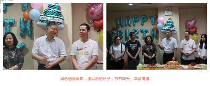周(zhou)總(zong)特為大家(jia)送(song)上祝福,他表示(shi):今天,我(wo)(wo)(wo)們迎(ying)來(lai)了集團五月(yue)的(de)(de)員工生(sheng)日會,首先(xian)祝福大家(jia)生(sheng)日快樂(le),在國際兒童節即(ji)將到(dao)來(lai)之(zhi)際,也祝愿全(quan)天下的(de)(de)小朋友們六(liu)一(yi)快樂(le)!我(wo)(wo)(wo)們有這(zhe)么多的(de)(de)好同(tong)事、伙伴、家(jia)人,相(xiang)信只(zhi)要(yao)我(wo)(wo)(wo)們有理想,有追求、有目標(biao)共同(tong)努力(li),一(yi)定會實現(xian)我(wo)(wo)(wo)們的(de)(de)夢想,造就行業傳奇。希望每(mei)一(yi)個人不掉(diao)隊(dui),一(yi)路前行,取得豐碩成果,我(wo)(wo)(wo)們要(yao)團結一(yi)心,戰無不勝,共同(tong)實現(xian)公司的(de)(de)短期目標(biao)和長期愿景。”