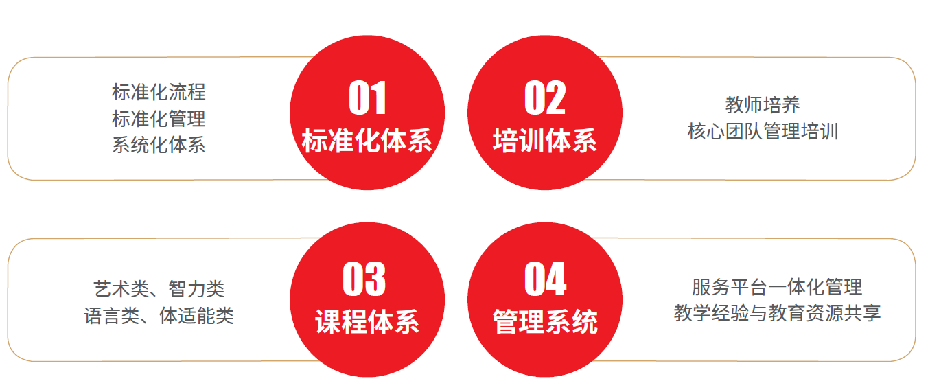 依托大風車(che)教(jiao)(jiao)育集團二十多(duo)年的(de)行(xing)業探索(suo)與(yu)發展,風車(che)匯智學(xue)堂(tang)擁有標(biao)準化(hua)的(de)管(guan)(guan)理(li)體系、培訓體系、課程體系和(he)完善的(de)管(guan)(guan)理(li)系統,涉及教(jiao)(jiao)育管(guan)(guan)理(li)的(de)方(fang)方(fang)面(mian)(mian)面(mian)(mian),包括教(jiao)(jiao)師(shi)職業素(su)質(zhi)標(biao)準、崗位(wei)職責標(biao)準、崗位(wei)考評標(biao)準、教(jiao)(jiao)學(xue)、教(jiao)(jiao)研、教(jiao)(jiao)務、財務、營銷管(guan)(guan)理(li)以及行(xing)政后勤、人力資源管(guan)(guan)理(li)等方(fang)面(mian)(mian),為(wei)校區(qu)運營提供標(biao)準、健全、可復制的(de)運行(xing)體系,幫助合作伙伴步入良性的(de)發展軌(gui)道,為(wei)盈利奠定(ding)堅實基礎。