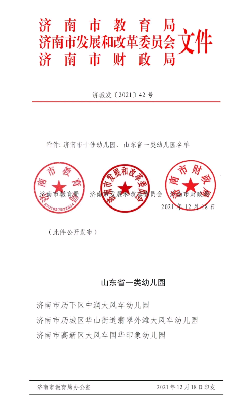 近日(ri),根據山(shan)東省教育廳等6部門《關于印發山(shan)東省幼(you)兒園(yuan)辦園(yuan)條(tiao)件標準的通知》(魯教基(ji)發〔2018〕4號)及《濟(ji)南市十佳幼(you)兒園(yuan)標準》,經市教育局、發改委、財政局組織專家驗收(shou)組聯合抽檢,大(da)風車教育集團旗下濟(ji)南市歷下區中潤大(da)風(feng)車(che)(che)幼(you)兒(er)園、濟(ji)南市歷城區華山街道翡翠外灘大(da)風(feng)車(che)(che)幼(you)兒(er)園和(he)濟(ji)南市高新(xin)區大(da)風(feng)車(che)(che)國華印象幼(you)兒(er)園被評為2021年山東省省級一類幼兒園(yuan)。