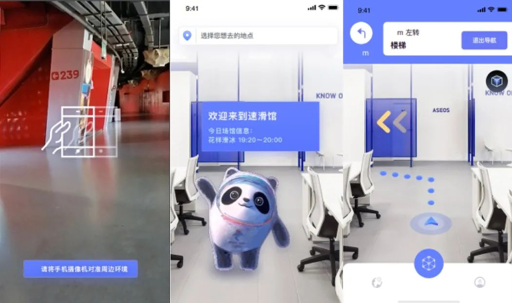 開幕式(shi)現場,“智能向導”向現場觀眾提供定位精準、隨叫隨到的引導服務。智能向導是一套融合了 AI 和 AR 技術的智能應用。觀眾只需要通過網絡連接到 AR 導航應用,打開攝像頭,就能實時享受到智能引導服務。