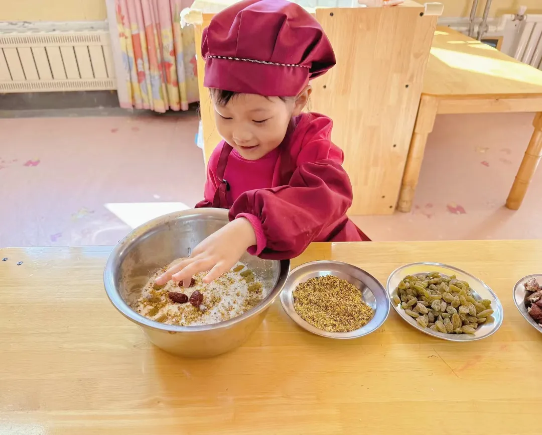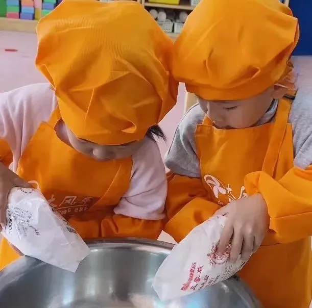 孩子們(men)在老師的(de)指導下,小(xiao)心翼翼的(de)調配(pei)著材料(liao),認真的(de)制作著每一塊糕(gao)點。