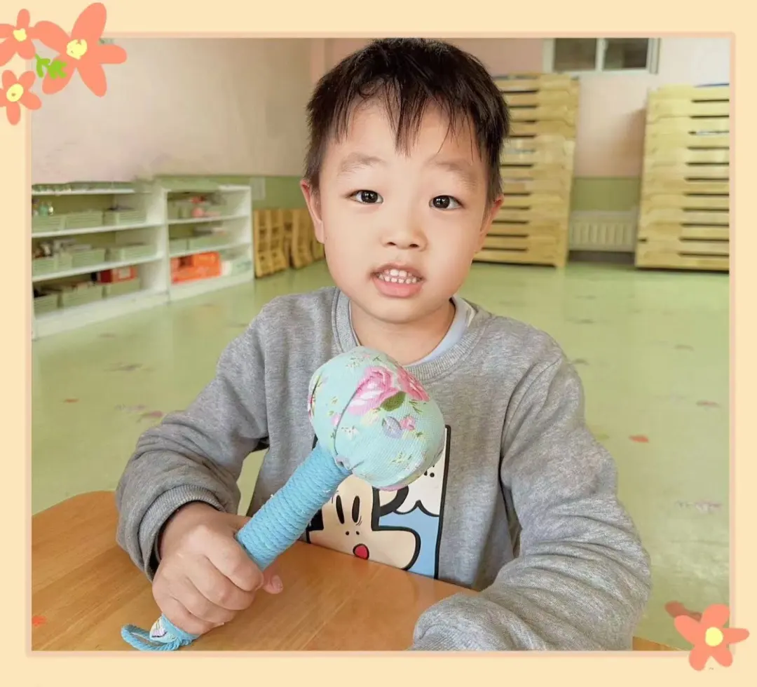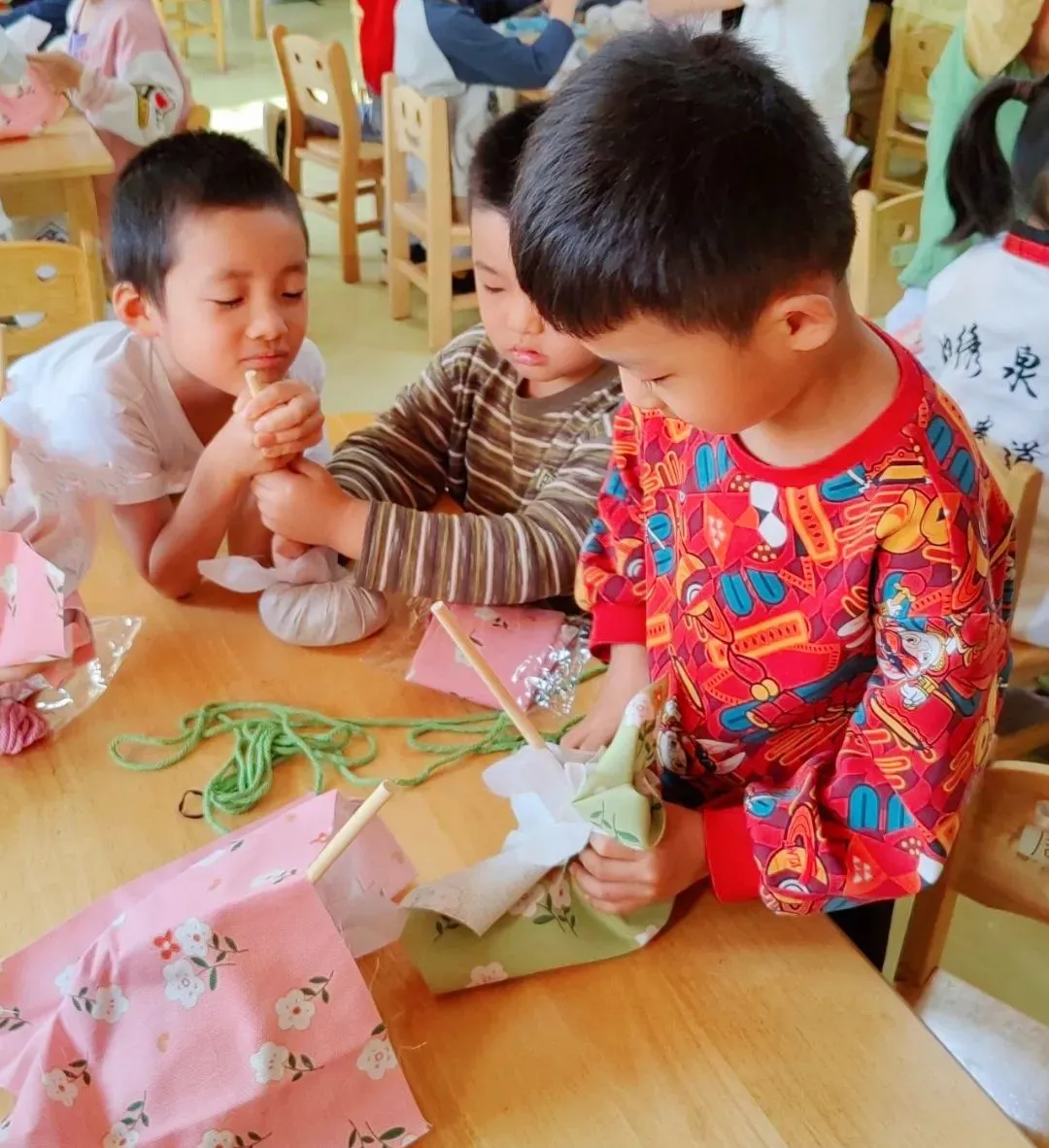 小(xiao)朋友們一起動手制作了艾(ai)草(cao)養生錘,裝上滿滿的(de)艾(ai)草(cao)用力壓(ya)一壓(ya),捏(nie)一捏(nie),把(ba)它(ta)包的(de)緊一點。