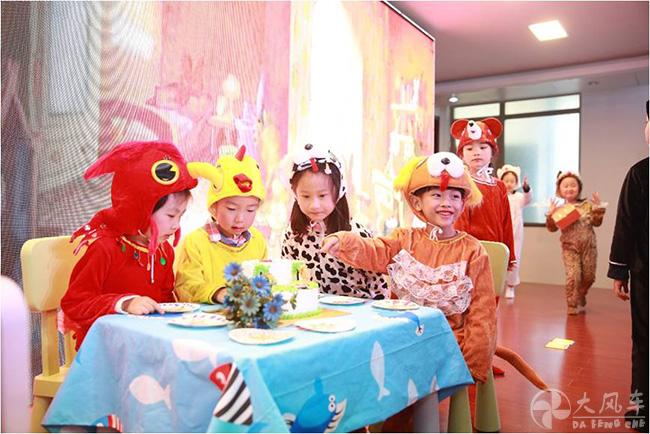 在會上大風車國華印象園的小朋友們代表全國大風車幼兒園的小朋友表演英語劇《小熊請客》。