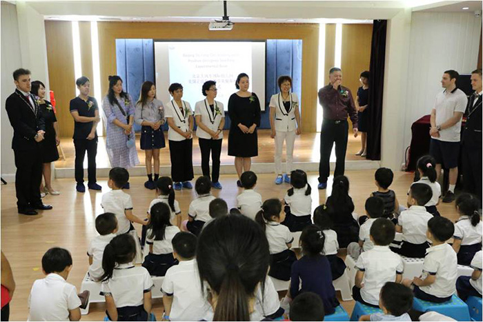 慰問的第四站——東方美郡國際園,周總與公司領導及家長代表共同參與了國際園“PD教學實驗基地”的揭牌儀式。