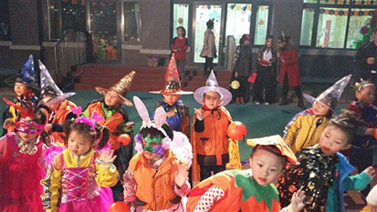 今天是萬圣(sheng)節,北京大風(feng)車雙語幼兒(er)園紫御東(dong)郡園歡(huan)聲笑(xiao)語,氣氛熱烈(lie),一場主題為“萬圣(sheng)節親子舞會”活(huo)動在(zai)這里(li)舉(ju)行。各(ge)式各(ge)樣的(de)南(nan)瓜頭和神態(tai)各(ge)異的(de)面(mian)具營(ying)造出濃濃的(de)萬圣(sheng)節氛圍,孩子變身“巫婆”和“海盜”,經典(dian)動畫中“蝙蝠俠”、“白雪公主”、“蜘蛛俠”都成為孩子們(men)的(de)裝扮對象。