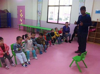 十月份初(chu),通(tong)城中心(xin)幼兒園迎接過(guo)來(lai)了我(wo)們(men)的(de)外教jimmy老(lao)師(shi)(shi)。他來(lai)自加拿大,來(lai)中國(guo)4年(nian)了,他不光英文講得好,簡單的(de)中文溝(gou)通(tong)也(ye)很(hen)棒!性格外向(xiang)的(de)jimmy老(lao)師(shi)(shi)在(zai)學校受(shou)到了孩子沒的(de)熱烈(lie)歡迎,孩子們(men)都愛聽jimmy老(lao)師(shi)(shi)的(de)課。