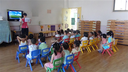 2014年7月,北京大風車雙語幼兒園濟南世紀佳園園舉辦了“英語教學成果展示PK賽”。英語教育是大風車幼兒園的特色教育。活動中老師和孩子們以中、小、托年齡段分組舉行,各班教師精心設計,發揮所長,采用唱歌、英語兒歌、游戲、跳舞、情景表演、知識問答等形式充分調動幼兒積極性,在歡快中學習備受孩子們喜愛。“英語教學成果展示PK賽” 展示了富有游戲性情境的英語學習活動、班級教育和教師的教學水平,同時這也是英語教學工作很好的一次自檢,保證大風車幼兒園教育教學質量的穩步提高。