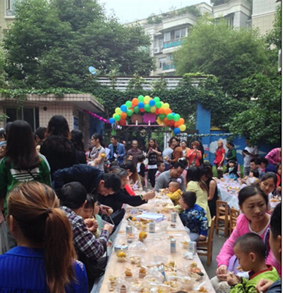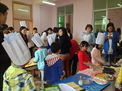 上午9:10分(fen)活動(dong)正式開(kai)始,董園長(chang)對(dui)每(mei)位孩(hai)子(zi)(zi)(zi)(zi)送去了(le)深情地祝福(fu)。大班孩(hai)子(zi)(zi)(zi)(zi)與(yu)家(jia)長(chang)們(men)興致(zhi)勃勃地制作美(mei)食(shi),看著孩(hai)子(zi)(zi)(zi)(zi)們(men)能(neng)親手操作,家(jia)長(chang)心(xin)里別提有(you)多(duo)高興,每(mei)一處都洋溢著滿滿的(de)幸福(fu)!托小中班幼(you)兒則與(yu)自己的(de)爸爸媽媽在教(jiao)室里進行親子(zi)(zi)(zi)(zi)游戲(xi),兩人三足、揪尾(wei)巴(ba)游戲(xi)獲得家(jia)長(chang)們(men)和(he)孩(hai)子(zi)(zi)(zi)(zi)的(de)喜愛。朗(lang)朗(lang)的(de)笑聲,把(ba)整(zheng)個校園包裹(guo)著。10:30分(fen)我(wo)們(men)就要(yao)開(kai)始分(fen)享(xiang)美(mei)食(shi)了(le),很(hen)多(duo)寶貝(bei)們(men)都已經迫(po)不(bu)及待。三明(ming)治、彩豆餅(bing)干、餃子(zi)(zi)(zi)(zi)……每(mei)一個店鋪(pu)門(men)口都排(pai)滿了(le)客(ke)人,寶貝(bei)們(men)忙得不(bu)亦樂乎,笑聲在校園里延(yan)續著!