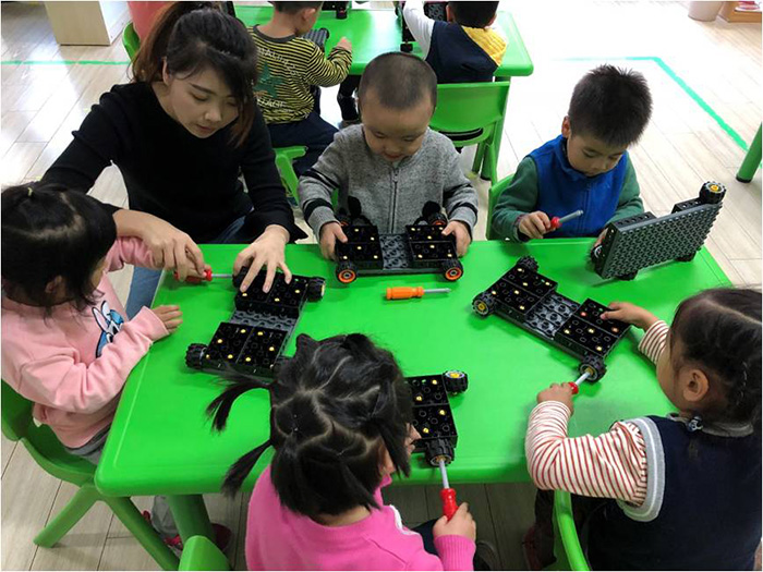 6歲幼兒的課程內容主要為“游(you)戲工程師”機器人的搭建,孩(hai)子們(men)通過拆卸玩具(ju),增強了探究精(jing)神與(yu)好奇心(xin)。
