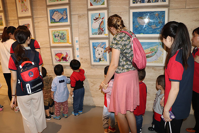 2019年6月6日上午,中潤大風車國際幼兒園無圍墻活動“走進山東美術館”,觀看“同一個世界?童一個夢想——慶祝新中國成立七十周年大型兒童畫展暨(山東省)首屆國際兒童公益畫展”。