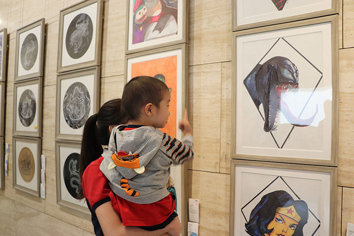 展覽中還穿插了許多有趣的互動裝置,如運用光線營造幻境的“光之捕手”、鍛煉空間想象力的“布偶拼拼拼”、以漫天飄搖的絲紗作畫的“紗?影”、五彩斑斕的紙飛機“斑斕的飛”等等,希望孩子們能在施教于樂中感受到藝術的魅力。