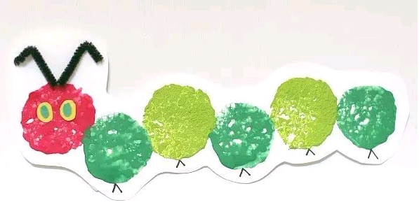 土豆(dou)切(qie)圓(yuan)塊(kuai),蘸(zhan)顏(yan)料,就可以(yi)做(zuo)一只毛毛蟲~