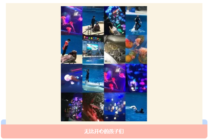 我(wo)們(men)(men)一起(qi)穿越海底隧道,孩(hai)(hai)子(zi)們(men)(men)被各種海底生(sheng)物(wu)所吸引,孩(hai)(hai)子(zi)們(men)(men)跑著(zhu)、家長們(men)(men)笑(xiao)著(zhu)、老師們(men)(men)樂(le)著(zhu),好想這一瞬(shun)間(jian)能永遠(yuan)定格……