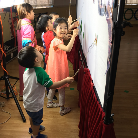 表演后,小朋友們積極接受表演者的提問,答對的還有機會親自體驗皮影戲呦,孩子們都紛紛舉手,認真回答問題。