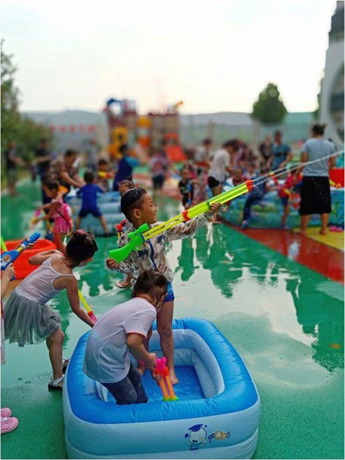 為了讓孩子們在活動中盡情玩耍,家長們做了充足的準備:泳衣、水瓢、水盆、水槍,孩子們“武器“在手,蓄勢待發。