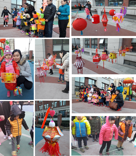 元宵節當然不能少了賞花燈,孩子們早帶來了和爸爸媽媽一起親手制作的花燈,下午老師們一起把花燈裝扮在幼兒園的操場上,5點活動準時開始:通過孩們自己評選的結果,園長先為孩子們制作的花燈頒獎“最佳創意獎”、“最具環保獎”、“最具人氣獎”,緊接著家長帶著孩子們開始游園賞花燈、猜燈謎、跳皮筋、丟沙包、踢毽子,參與游戲獲得三個小印章就送一個精致的元宵節禮物......操場上大家歡聲笑語,孩子們充分體驗著我們中華民族特有的傳統節日,徜徉在五彩繽紛的花燈海洋中,感受著元宵節歡樂、喜慶、祥和的氣氛。