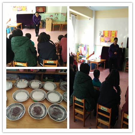 接下來就是我們的課程了,孩子們在老師的指導下,了解元宵節的來歷;分別從“看、玩、吃”三個方面了解元宵節的風俗習慣;最后了解了做元宵的整個過程:食材介紹、和面、搓元宵的方法,并親手制作元宵。讓我們一起來看看吧······