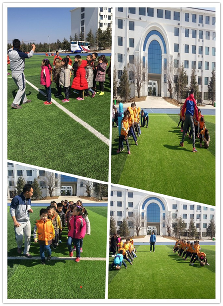 隨后孩子們來到操場上,體育老師和大家一起做游戲,上網球課,孩子們的歡聲笑語沉浸在校園里。孩子們在操場上合影留念記錄下這難忘的時刻。