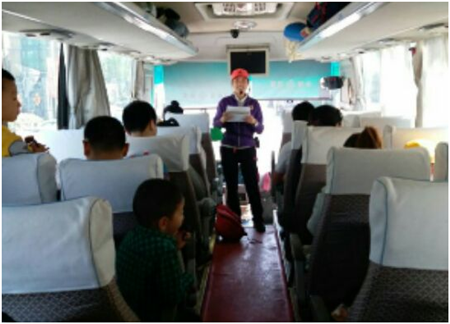 看寶貝和家長上車了,老師在講解注意事項呢!