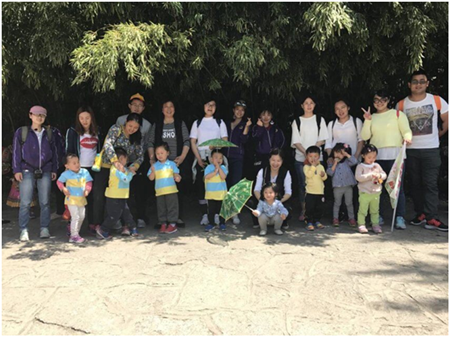 幼兒園集合啦!孩子和家長都在耐心等待出發哦~~~