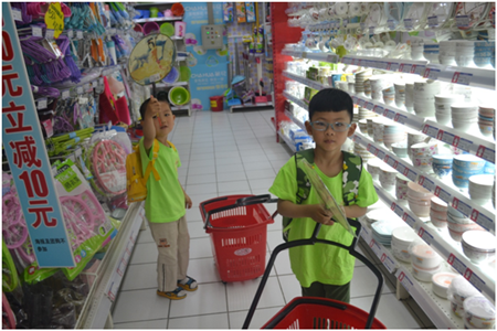 中班級部“走進社區”主題活動——“媽媽的禮物”。我們在母親節前期,號召幼兒“變廢為寶”,將家里的廢舊物品或紙箱紙盒收拾好換成錢,或者通過自己的努力及社會實踐活動賺到錢,將賺來的錢給媽媽買成禮物。5月9日到5月12日。我們帶領中班幼兒走進超市,為媽媽購買母親節的禮物。讓孩子們自主選擇,全程由幼兒獨立完成。