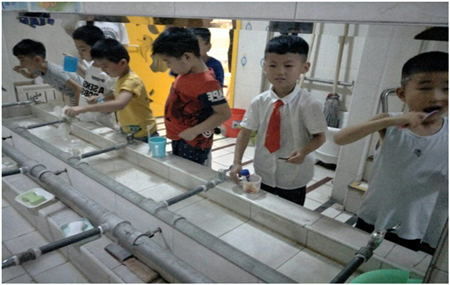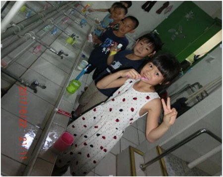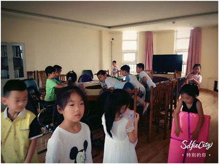 深夜里,老師們(men)巡視給孩子們(men)蓋(gai)被子。