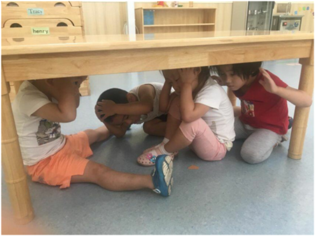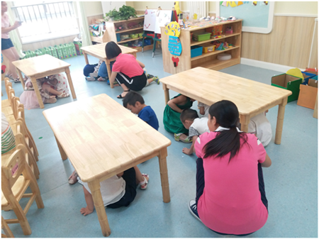 孩子們(men)都在和(he)老師們(men)一起學(xue)習地震到來時(shi)需要做(zuo)的事情!我(wo)們(men)第一步首先要鉆到堅固的家居下,然后保護好頭(tou)部,不能乘(cheng)坐電梯,不能跳(tiao)窗、跳(tiao)樓。看我(wo)們(men)幼(you)兒園的小朋友們(men)是(shi)怎(zen)么做(zuo)的吧(ba)!