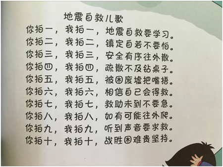 我(wo)們(men)的(de)老師們(men)還帶領了孩子們(men)一起學(xue)習了一首關于(yu)地震(zhen)的(de)兒歌(ge)!讓孩子們(men)牢(lao)牢(lao) 的(de)記在心(xin)里~~~