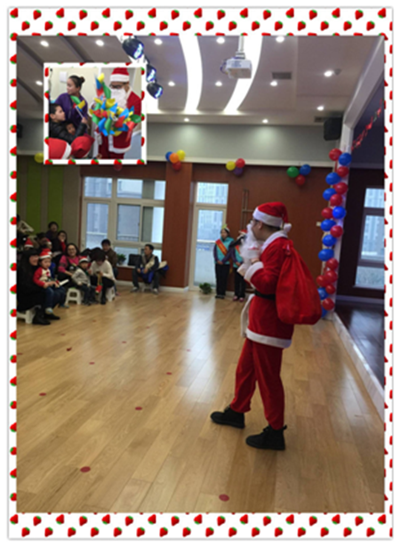9:20,我們的大朋友、小朋友都到齊咯!圣誕老爺爺如約而至為這次活動開場,非常歡迎家長和寶寶們的到來!希望寶寶們早日加入大風車翡翠外灘幼兒園,我們會盡最大努力帶給寶寶高質量、高水平的幼兒園生活,讓寶寶們擁有一個不一樣的童年!