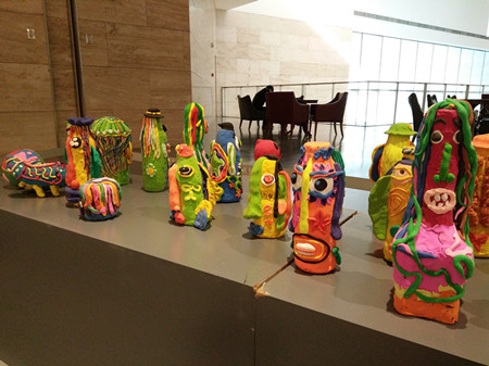 走進美術館,好有藝術氣息,突然小朋友都很自覺的安靜了下來。工作員叔叔給我們講解注意事項:不能大聲喧嘩,不能碰作品,更不要把水撒到地上或者作品上,小朋友如果走丟可以找穿制服的叔叔阿姨幫助。在記住了這些規則之后我們開始進行參觀啦!