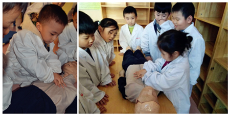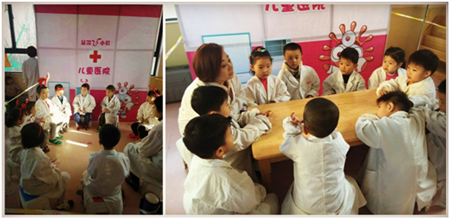 兒童醫院:醫生是個神圣的職業,今天,我們也來體驗一把,穿上白大褂,戴上聽診器,跟老師學習如何自救和搶救別人,抬起擔架,我的小小肩膀上有著重重的責任。