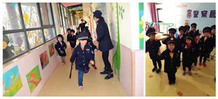 警察局:帶上大蓋帽,穿上小警服,拿起小警棍,我就是神氣的小警察,抓壞人,保平安!我們都好厲害