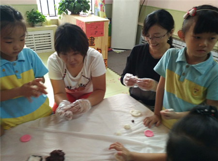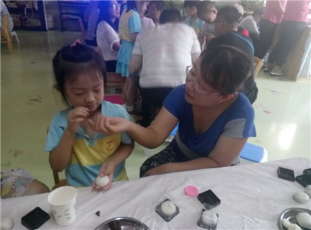 接下來我們把(ba)目(mu)光轉向大四(si)班,大四(si)班先讓小(xiao)朋友一起背誦(song)了《水調(diao)歌頭》渲染了節(jie)日(ri)氣氛,并(bing)了解了中秋節(jie)的來歷(li)。最后讓小(xiao)朋友一起制作了中秋節(jie)的傳統(tong)食物——月(yue)餅(bing)。