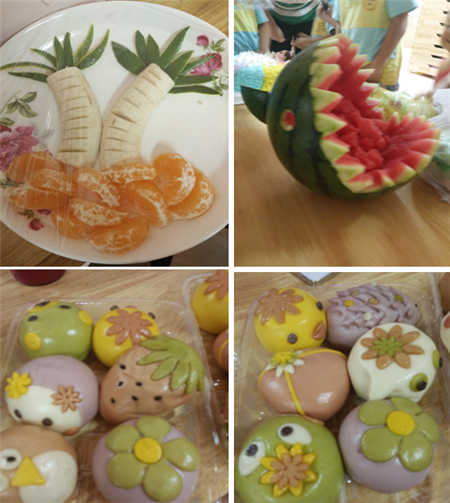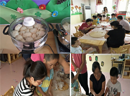 大三(san)班呢,則是以聚餐為主,每一(yi)家庭帶一(yi)道菜,就像一(yi)家人一(yi)樣,團聚在一(yi)起(qi),一(yi)起(qi)分享品(pin)嘗,其樂融(rong)融(rong)。最后也制作(zuo)了月餅。