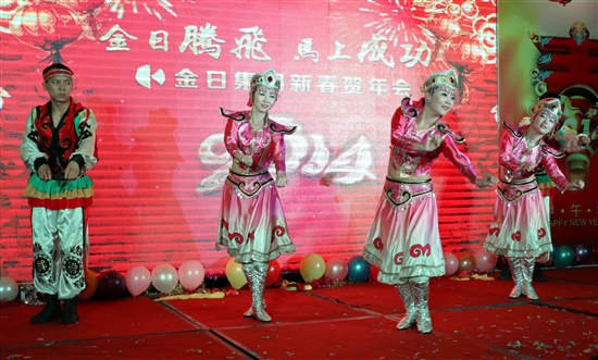 集(ji)(ji)團(tuan)董(dong)事長周(zhou)建(jian)民先(xian)生(sheng)(sheng),總經理周(zhou)建(jian)國先(xian)生(sheng)(sheng)等領導嘉賓出席了本次年(nian)會(hui)。董(dong)事長周(zhou)建(jian)民先(xian)生(sheng)(sheng)首先(xian)上臺(tai)致(zhi)新年(nian)賀(he)詞(ci),回顧了集(ji)(ji)團(tuan)2013年(nian)的(de)發(fa)(fa)展歷程,肯定了集(ji)(ji)團(tuan)所(suo)取得(de)的(de)輝煌成(cheng)績(ji),特(te)別是對我們(men)大風車所(suo)取得(de)的(de)成(cheng)績(ji)給予(yu)了相當高的(de)評價,他還對大風車未來(lai)的(de)發(fa)(fa)展提出了新的(de)要求和期望,同時為(wei)集(ji)(ji)團(tuan)全體員(yuan)工及(ji)家屬(shu)送上了節日(ri)(ri)的(de)祝福,周(zhou)總致(zhi)辭完畢,金日(ri)(ri)集(ji)(ji)團(tuan)“金日(ri)(ri)騰飛,馬上成(cheng)功(gong)”新春賀(he)年(nian)會(hui)正式啟動(dong)。