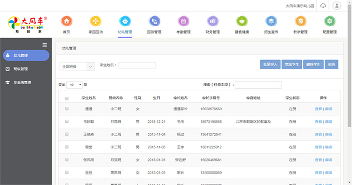 大風車(che)和睦家強大的(de)(de)后臺(tai)支持系(xi)(xi)統(tong)是(shi)本(ben)次課程中的(de)(de)一大亮點。系(xi)(xi)統(tong)后臺(tai)各板塊之間協(xie)調運行,模塊功(gong)能覆蓋了(le)園(yuan)所運行的(de)(de)方方面(mian)面(mian)。同時,各子系(xi)(xi)統(tong)的(de)(de)研發充分考(kao)慮了(le)用戶需(xu)求(qiu),帶來(lai)更便捷、更智(zhi)慧的(de)(de)線上云(yun)服務(wu),是(shi)園(yuan)所高效辦公的(de)(de)助手,極大地增強了(le)用戶體驗。
