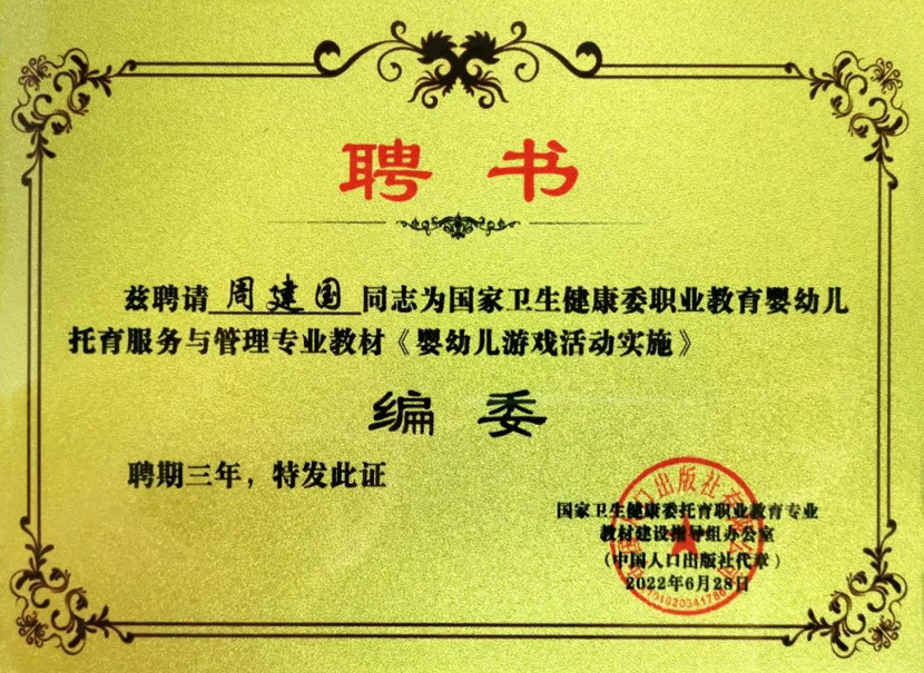 重磅 |大風車教育集團創始人、總裁周建國先生入選國家衛健委托育職業教育專業教材編委2022-07-11