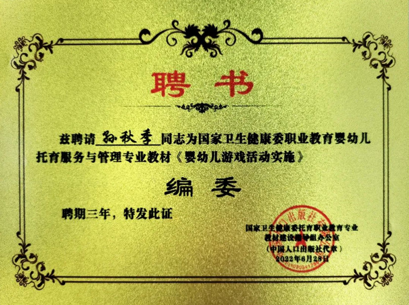 經托育職業(ye)教(jiao)(jiao)育專(zhuan)業(ye)教(jiao)(jiao)材(cai)建(jian)設審核組專(zhuan)家(jia)嚴格審核與遴選,大(da)(da)風(feng)車教育集團創始人、總(zong)裁(cai)周建國(guo)先生,大(da)(da)風(feng)車教育集團教育專(zhuan)家(jia)、大(da)(da)風(feng)車高研院院長孫秋季女士成功(gong)入選國(guo)家(jia)衛生健(jian)康委職業(ye)教育專(zhuan)業(ye)教材編委。