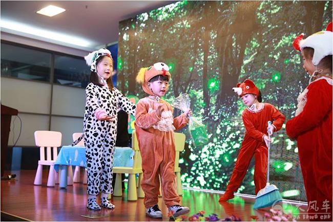 在會上大風車國華印象園的小朋友們代表全國大風車幼兒園的小朋友表演英語劇《小熊請客》。