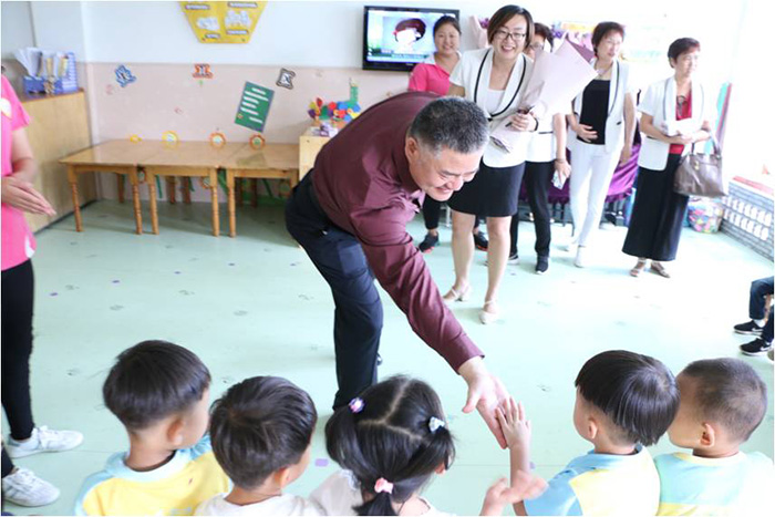 世紀佳園園是大風車教育集團成立最早的幼兒園,可謂歷史悠久,傾注了周總諸多心血。在詳細了解了園所發展情況、參觀了班級環境、觀察了小朋友的精神狀態之后,周總對園所的發展建設給予了充分肯定和高度評價,并對園所今后的發展方向、設施設備更新、創新教育教學等提出了指導性意見和建議。