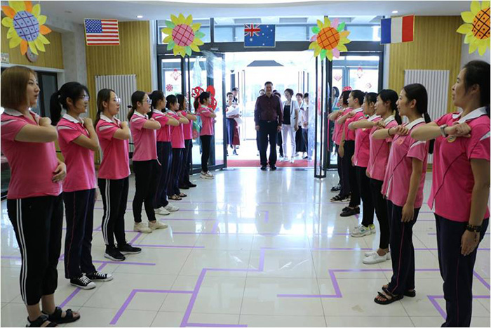 隨后,周總一行來到了大風車國華印象園。印象園的老師們,在教師節這個特殊的日子莊嚴宣誓:“今日我以大風車為榮,明日大風車以我為傲”。這樣的信心著實令大家印象深刻,倍受感動,周總深感欣慰,對老師們的舉動給予了高度贊譽,臨別前與大家親切合影。