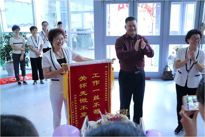 鑒于開園前經歷的波折與坎坷,有感于公司領導的大力支持,幼兒園特準備錦旗一面表達對領導的感謝:“關懷無微不至,工作一絲不茍。”周總深受感動,鼓勵園長及老師們不畏艱難,大力發展。