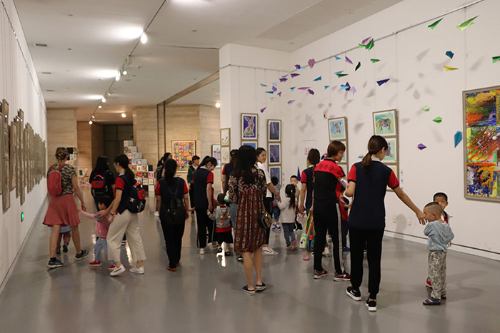 展覽中還穿插了許多有趣的互動裝置,如運用光線營造幻境的“光之捕手”、鍛煉空間想象力的“布偶拼拼拼”、以漫天飄搖的絲紗作畫的“紗?影”、五彩斑斕的紙飛機“斑斕的飛”等等,希望孩子們能在施教于樂中感受到藝術的魅力。