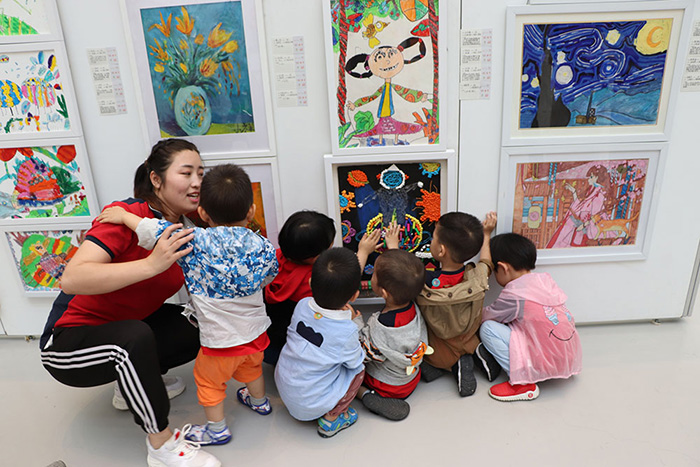 2019年6月6日上午,中潤大風車國際幼兒園無圍墻活動“走進山東美術館”,觀看“同一個世界?童一個夢想——慶祝新中國成立七十周年大型兒童畫展暨(山東省)首屆國際兒童公益畫展”。