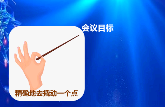 指揮棒指的(de)(de)是有明確的(de)(de)指向和精準(zhun)的(de)(de)功能。你要給你的(de)例會定(ding)一個明(ming)確的(de)目標,我(wo)只(zhi)(zhi)指向這一點,我(wo)只(zhi)(zhi)在一個點上去發(fa)力(li)。這就是一根指揮(hui)棒的(de)作用,就是很精確地去(qu)撬(qiao)動一個點。這個(ge)點是什(shen)么(me)?是會(hui)議目標。