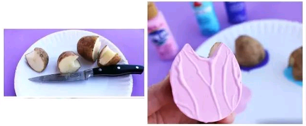 土豆(dou)切(qie)圓(yuan)塊(kuai),蘸(zhan)顏(yan)料,就可以(yi)做(zuo)一只毛毛蟲~