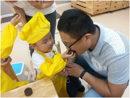 活動(dong)前夕,老師共(gong)同收(shou)集(ji)關于中秋節(jie)來歷(li)、習俗、傳說,月餅(bing)(bing)(bing)的(de)(de)種類、樣式等等資料……以此讓寶(bao)貝們(men)更直觀地了解了中秋節(jie)的(de)(de)重要性。活動(dong)中,經(jing)過孩(hai)(hai)子們(men)的(de)(de)巧手加工,一(yi)個(ge)個(ge)像模(mo)像樣的(de)(de)月餅(bing)(bing)(bing)新鮮出爐(lu)了。看到(dao)自己(ji)(ji)動(dong)手做出來的(de)(de)月餅(bing)(bing)(bing),活動(dong)室里喜悅感(gan)、成就感(gan)、滿(man)足(zu)感(gan)縈繞其間(jian)。最(zui)后孩(hai)(hai)子們(men)一(yi)起品(pin)嘗月餅(bing)(bing)(bing),分(fen)享自己(ji)(ji)的(de)(de)勞動(dong)成果。我們(men)借(jie)此機會教育幼(you)(you)兒要將自己(ji)(ji)第(di)一(yi)次動(dong)手制(zhi)作的(de)(de)月餅(bing)(bing)(bing)與家人(ren)一(yi)起分(fen)享,讓幼(you)(you)兒體驗與他人(ren)分(fen)享帶給自己(ji)(ji)的(de)(de)快樂(le)。圓(yuan)圓(yuan)的(de)(de)月餅(bing)(bing)(bing)寓意著(zhu)團團圓(yuan)圓(yuan),借(jie)此活動(dong)大風車翡翠外灘園祝愿(yuan)每個(ge)家庭團圓(yuan)、幸福、美滿(man)。