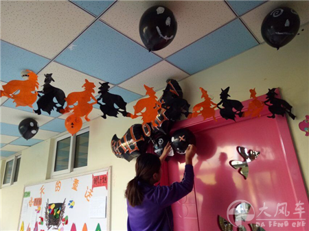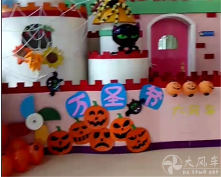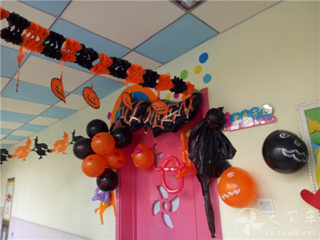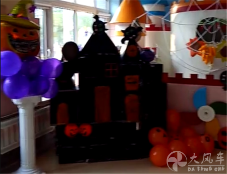 活動前,老師們為給幼兒創造一(yi)個輕松,活躍的(de)氛圍,在(zai)幼兒園的(de)門(men)廳(ting),教室門(men)口用氣球,南瓜(gua)燈,紙箱城堡布置了一(yi)個又一(yi)個的(de)場景。
